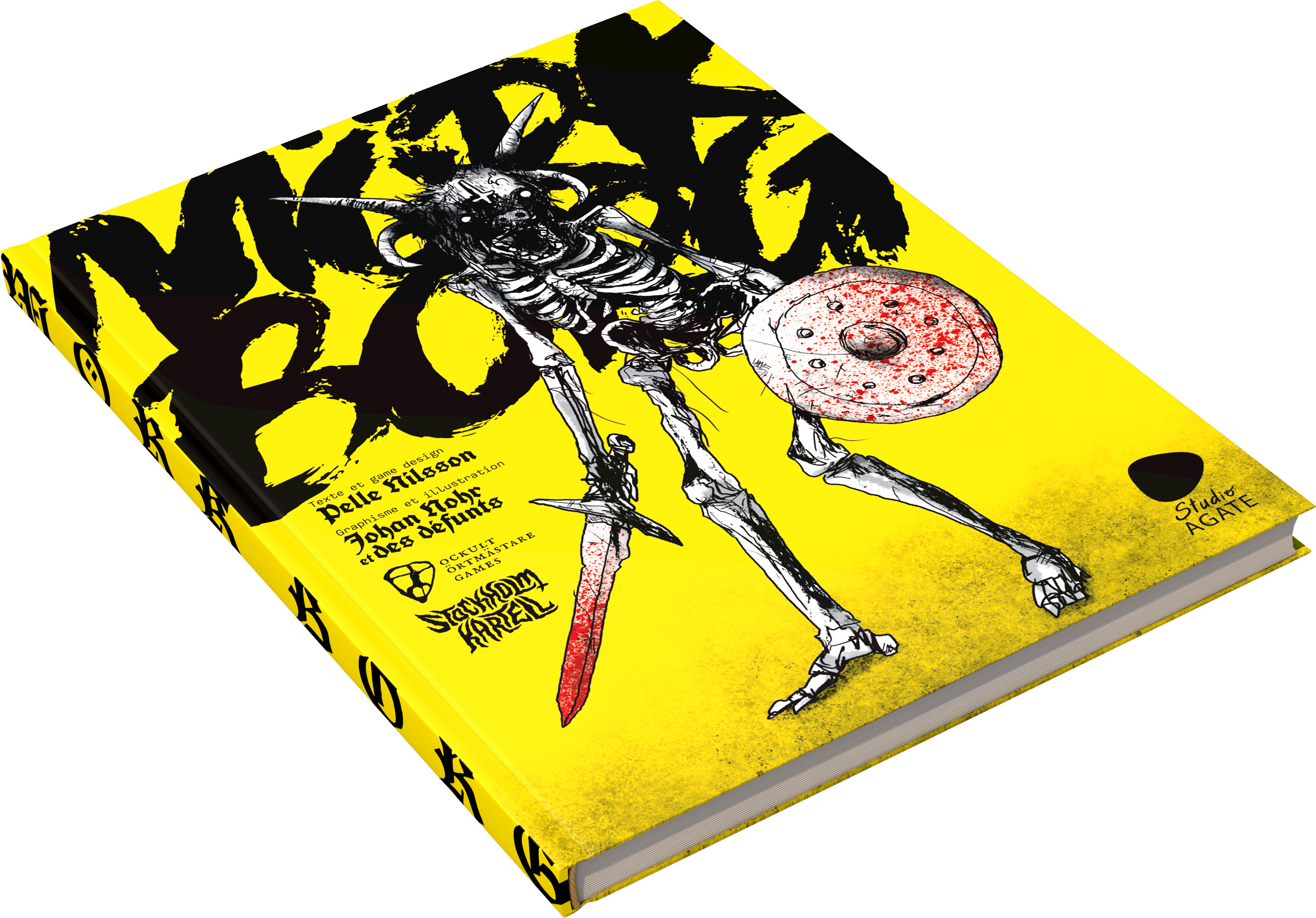 Je veux bien entendu parler de Mörk Borg, le jeu OSR à la mise en page détonante et à la direction artistique acide. MB (bah quoi ?) a été publié en version anglaise dès 2020 et c’est donc seulement courant 2026 que l’on pourra en profiter dans la langue de Pierre Rosenthal. Entre temps, le jeu a été décliné à travers une multitude de suppléments, hacks, versions alternatives, etc. devenant un des plus inattendus gros succès d’édition de ces dernières années.
